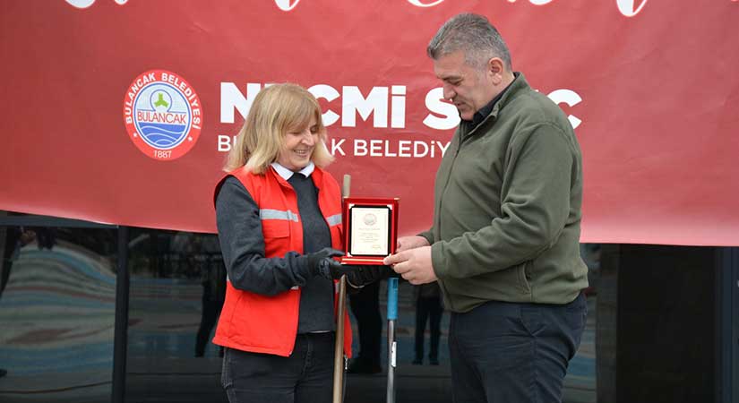 Bulancak Belediyesi, 1 Mayıs Emek ve Dayanışma Günü’nde temizlik personeli Yeter Elikara’yı plaketle onurlandırarak anlamlı bir mesaj verdi.