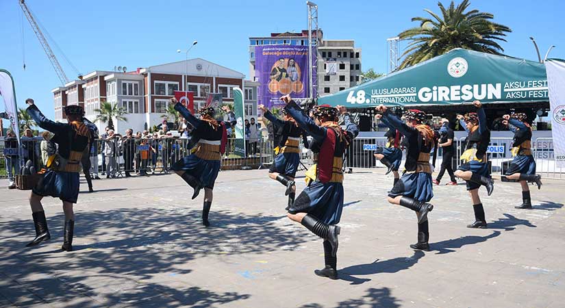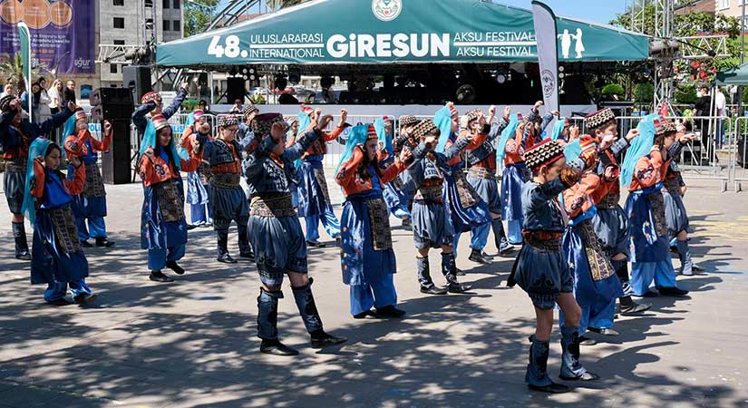 48.Uluslararası Giresun Aksu Festivali, Atatürk Meydanı’nda gerçekleşen etkinliklerle tüm coşkusuyla sürüyor. Yerli ve yabancı halk oyunları ekiplerinin sahne aldığı gösteriler, izleyicilere görsel bir şölen sundu. Renkli kostümler ve ritmik figürlerle izleyenleri kendine hayran bırakan ekipler, festivalin kültürel zenginliğini yansıttı.