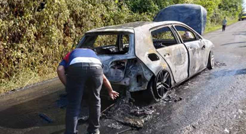 Görele’nin Akharman Köyü sakinlerinden Kazım Çabuk’a ait araç, Dikmen (Çukur) Köyü yolunda seyir halindeyken aniden alev aldı. Araçta bulunanlar son anda kurtuldu