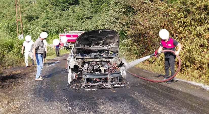 Görele’nin Akharman Köyü sakinlerinden Kazım Çabuk’a ait araç, Dikmen (Çukur) Köyü yolunda seyir halindeyken aniden alev aldı. Araçta bulunanlar son anda kurtuldu