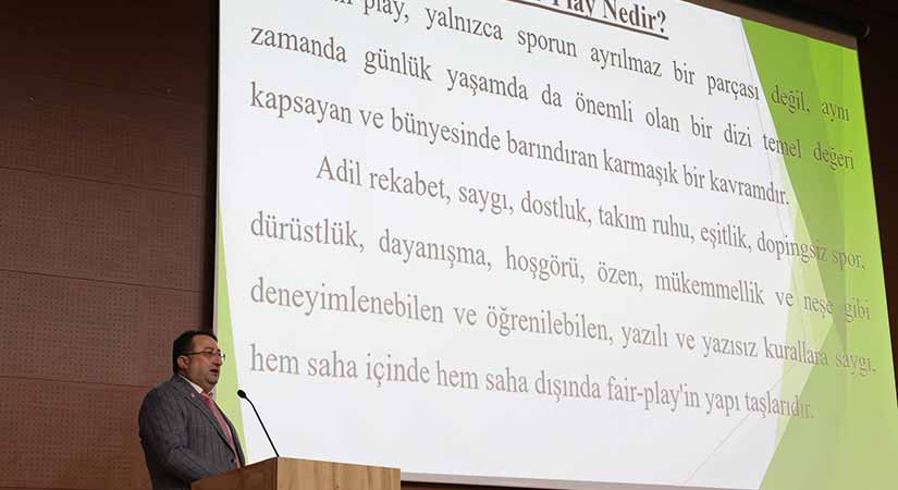 Etkinlik kapsamında GSB Gençlik Merkezleri ve spor faaliyetleri tanıtıldı. Türkiye Milli Olimpiyat Komitesi (TMOK) Fair Play Komisyonu Üyesi ve Giresun Üniversitesi Sağlık Bilimleri Enstitüsü Müdürü Prof. Dr. Kürşad Han Dönmez tarafından “Türkiye’de Fair Play” konulu bir sunum gerçekleştirildi. Sunumda sporun centilmenlik, saygı ve ahlak yönü ön plana çıkarıldı.