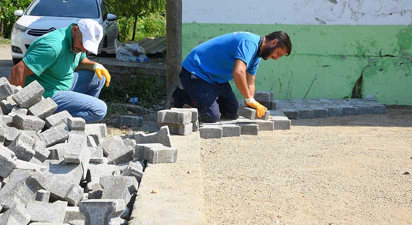 Yağışlı havalarda çamur deryasına dönen saha çevresinin ilk düzenlemeleri tamamlandı. İlk olarak saha girişine asfalt döküldü. Ardından ise saha çevresine parke taşları döşenmeye başlandı.