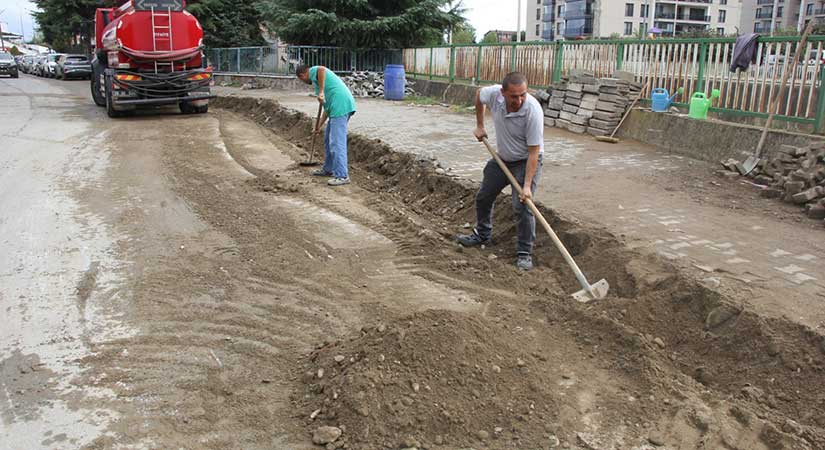 Çalışmalar kapsamında, farklı mahallelerde yol ve kaldırım düzenlemeleri yapılıyor.
