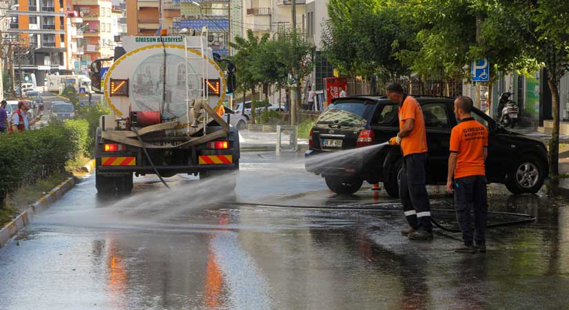 ‘Temiz Çevre, Temiz Bir Şehir’ kapsamında çalışmalarını aralıksız sürdüren Giresun Belediyesi şehir merkezindeki cadde ve sokaklarda yıkama işlemi gerçekleştiriyor.