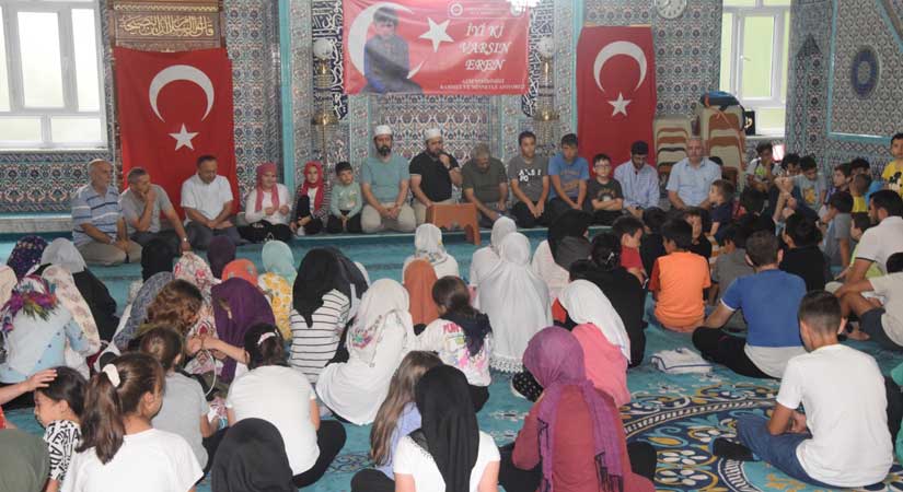 Programda yaz Kur’an kursunda eğitim gören çocuklar, hafız öğrenciler ve Din görevlileri tarafından Kur’an-ı Kerim tilaveti, ilahi okundu.