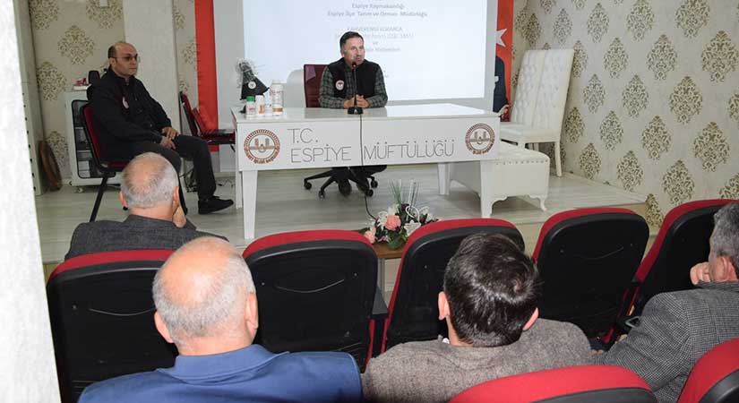 Espiye Tarım ve Orman Müdürü Metin Küp ve Ziraat Mühendisi Şaban Kırca tarafından din görevlilerine yönelik kahverengi kokarca ile mücadele yöntemleri ve zamanlaması konularında bilgiler verildi.