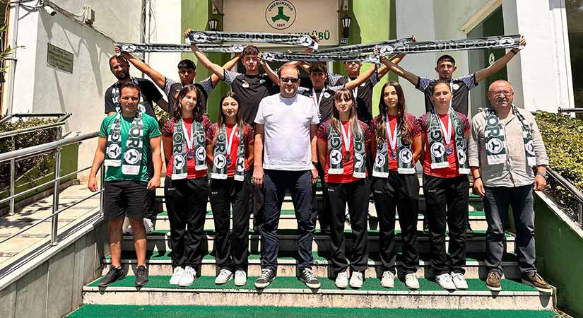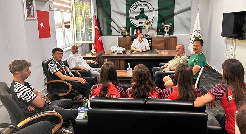 Şampiyon sporcular, antrenör Ata Atakul ve Espiye Es Es Spor Onursal Başkanı Azmi Bük, dün Giresunspor Başkanı Emin Eltuğral’ı kulüpte ziyaret etti. Ziyarette sporcuları tek tek tebrik eden Eltuğral, “Kazandığınız şampiyonlukla şehrimizi gururlandırdınız. Başarılarınızın devamını diliyorum” dedi.