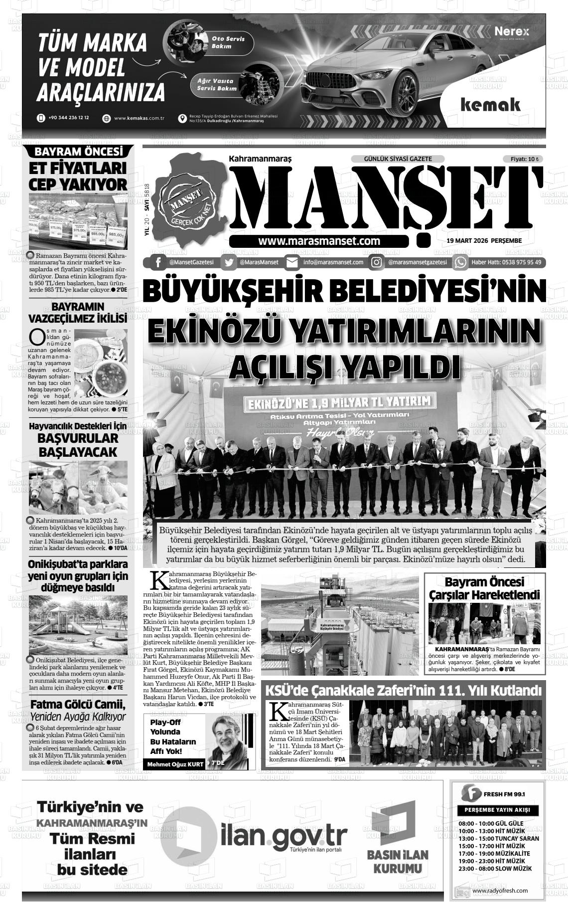 KAHRAMANMARAŞ MANŞET