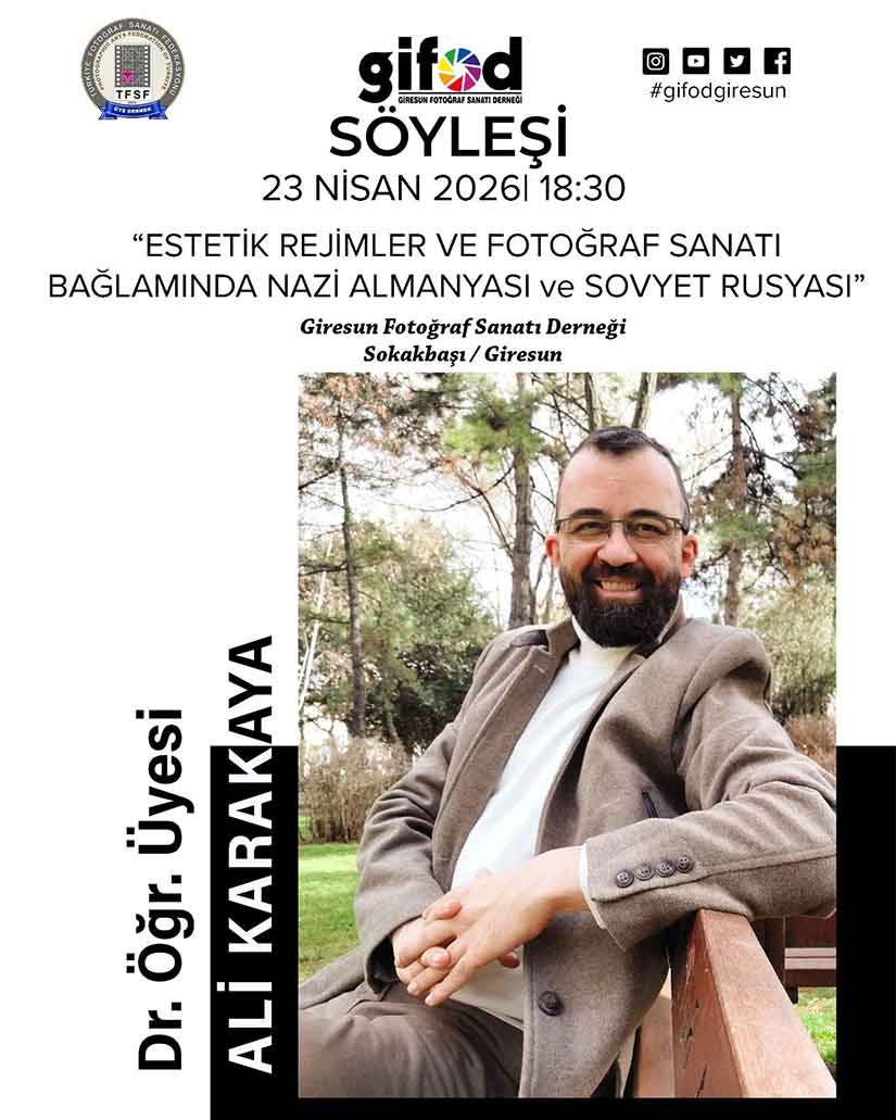 Giresun’da fotoğraf ve görsel kültüre ilgi duyanlar için dikkat çeken bir etkinlik düzenleniyor. Giresun Fotoğraf Sanatı Derneği tarafından organize edilen söyleşide, estetik rejimler çerçevesinde Nazi Almanyası dönemi ve Sovyet Rusyası dönemi ele alınacak.