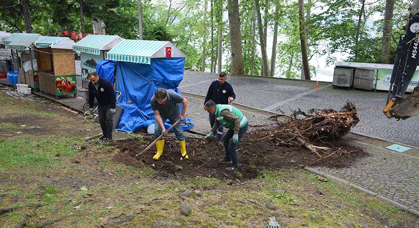 Kesilmiş ağaç kökleri söküldü, görsel kirlilik ortadan kaldırıldı