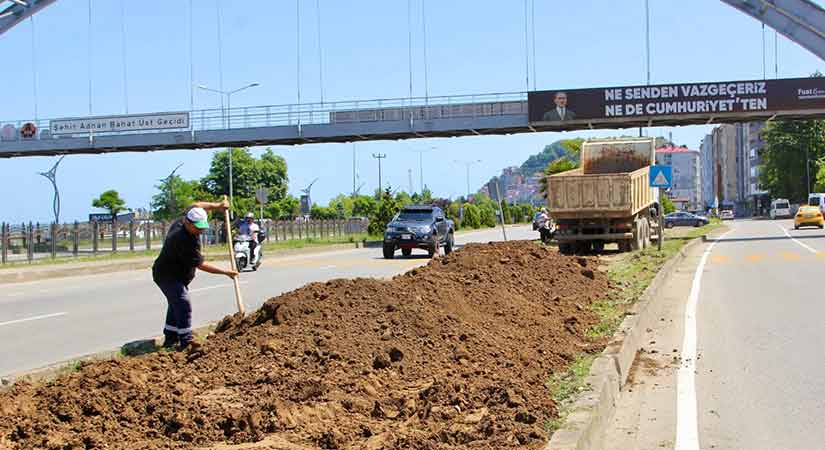 Kumyalı mevkiinde Avrupa Birliği destekli Atıksu Projesi kapsamında yapılan çalışmalar sırasında hasar gören orta refüjde de toprak dökme ve peyzaj çalışması tamamlandı.