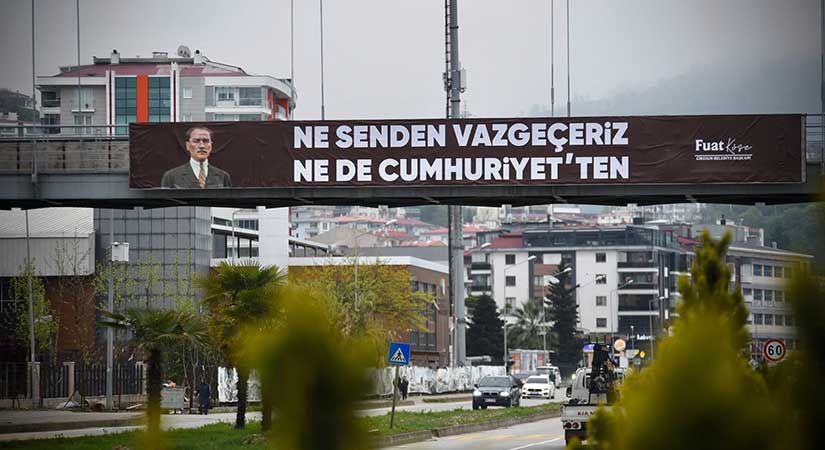 Giresun Belediyesi, Ulu Önder Gazi Mustafa Kemal Atatürk’e olan sevgiyi ve minneti kent geneline yayılan dikkat çekici bir çalışmayla bir kez daha gözler önüne serdi. Şehirdeki üst geçitler, Atatürk’ün fotoğrafları, özlü sözleri ve duygu yüklü mesajlarla donatıldı.