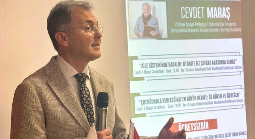 Giresun Kent Konseyi’nin organizasyonuyla gerçekleştirilen eğitim programında, yüksek sosyal pedagog Cevdet Maraş katılımcılarla bir araya geldi. Yoğun ilgi gören etkinlikte, babalığın modern dünyadaki rolü farklı boyutlarıyla değerlendirildi.