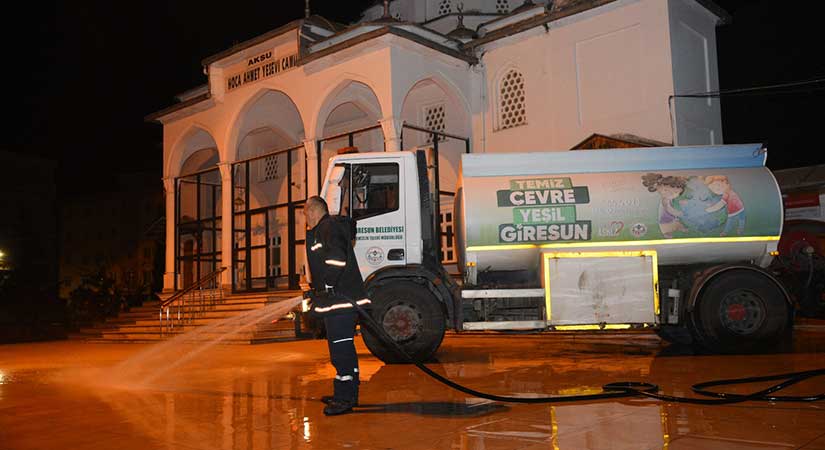 Giresun Belediyesi, şehir genelinde yürüttüğü temizlik çalışmaları kapsamında cami avlularında yıkama çalışmalarını sürdürüyor. Belediye ekipleri, vatandaşların daha sağlıklı ortamlarda ibadet edebilmesi için yoğun mesai harcıyor.