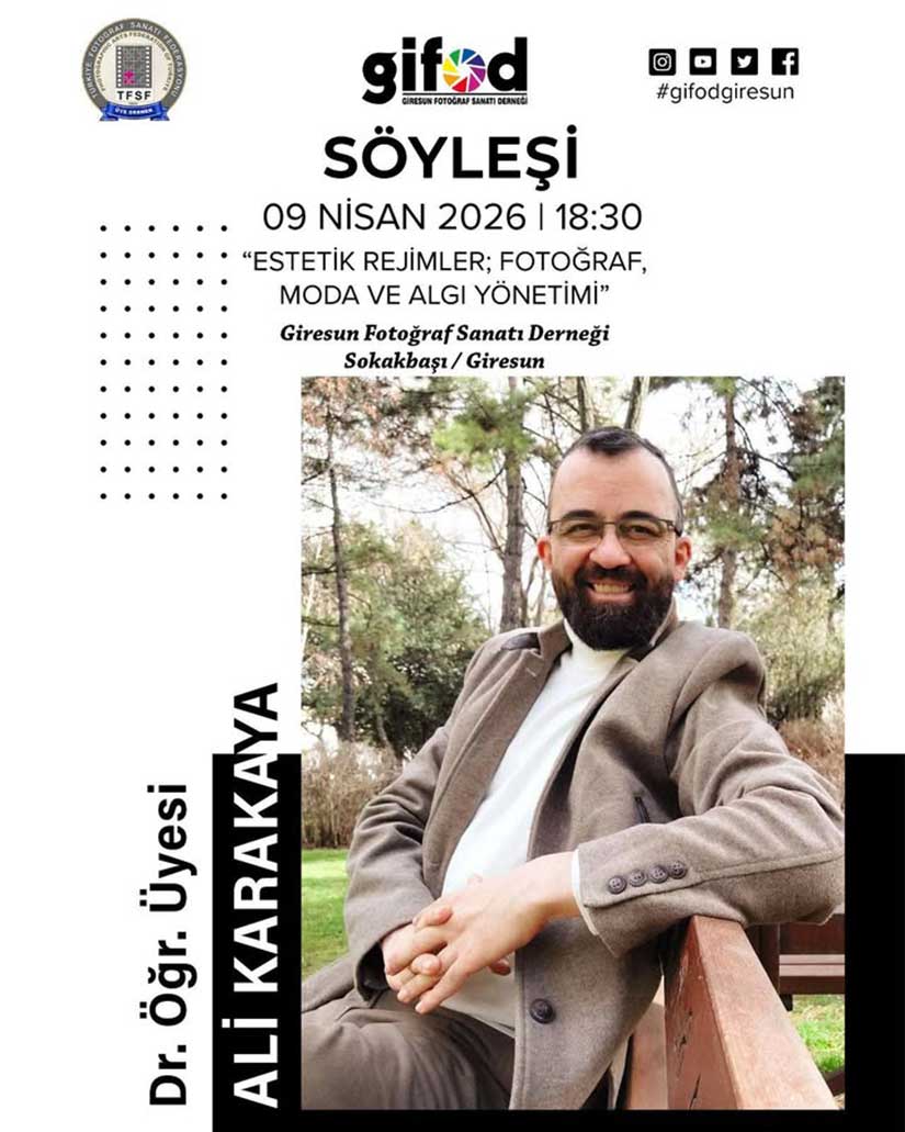 Giresun Fotoğraf Sanatı Derneği (GİFOD), önemli bir akademik ismi ağırlamaya hazırlanıyor. Giresun Üniversitesi Tirebolu İletişim Fakültesi Öğretim Üyesi Dr. Öğr. Üyesi Ali Karakaya, “Estetik Rejimler; Fotoğraf, Moda ve Algı Yönetimi” başlıklı söyleşiyle katılımcılarla buluşacak.