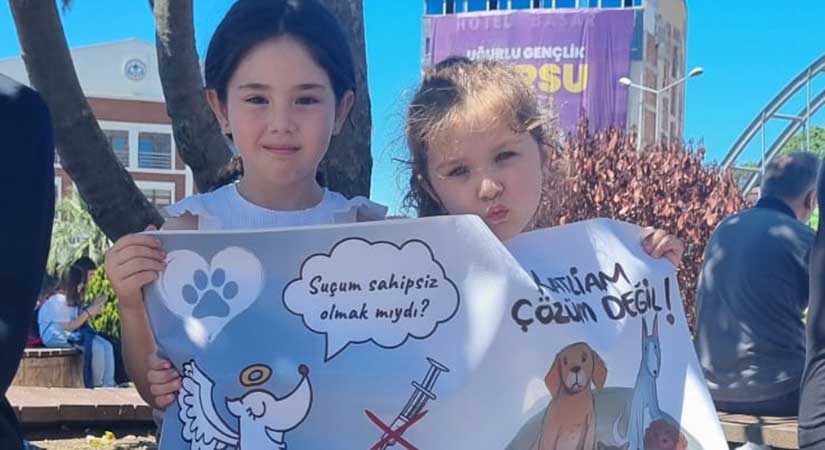 Eylemde “Uyutmak Cinayettir” pankartları taşındı ve hayvanların öldürülmesine karşı çıkıldı.