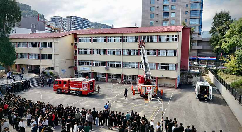Tatbikat senaryosu gereği okulda çıkan yangın siren sesiyle duyuruldu. Öğrenciler hızla tahliye edilerek güvenli alanlara yönlendirilirken, Giresun İtfaiyesi ekipleri kısa sürede olay yerine ulaştı. Kurtarma ekipleri yangında mahsur kalan kişilerin kurtarılmasını ve sağlık ekiplerince tedavi edilmesini canlandırdı.