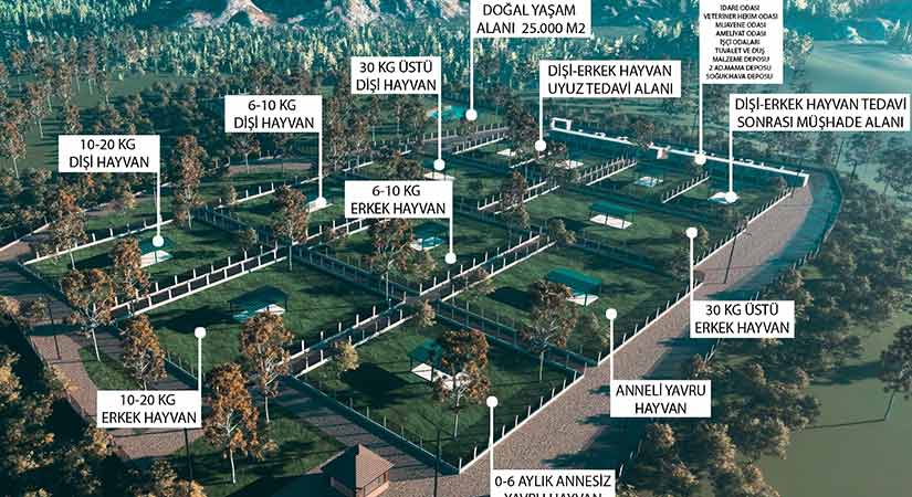 Projede; 10 adet hayvan barınma ünitesi, veteriner hekim ve ameliyathane odaları, muayene alanları, idari ofisler, personel dinlenme alanları, mama ve soğuk hava depoları, duş-tuvalet gibi alt yapılar ve otopark yer alacak.