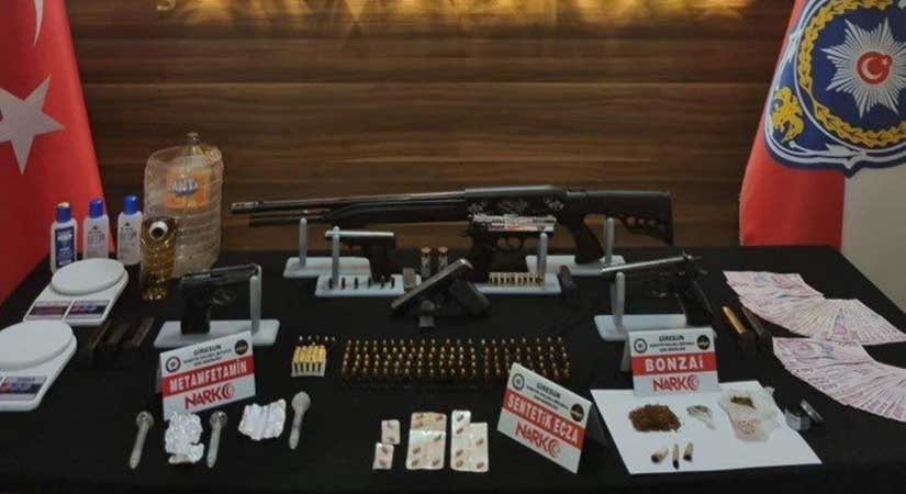 Silah ve mühimmat da dikkat çekti. 6 ruhsatsız tabanca, 1 kurusıkı tabanca, 1 ruhsatsız tüfek ve 164 fişek ele geçirildi. Hassas teraziler, payp, öğütücü ve aseton gibi uyuşturucu üretiminde kullanılan malzemelere de el konuldu. Operasyonlarda 16 bin 650 lira nakit para bulundu.