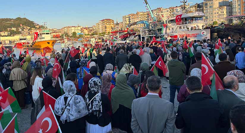 Filistin’e Destek Platformu öncülüğünde gerçekleştirilen program, Kumyalı Balıkçı Barınağı’nda başladı. Tekne ve balıkçı kayıkları Türk ve Filistin bayraklarıyla süslendi. Yüzlerce vatandaşın katıldığı etkinliğe Giresun Valisi Mehmet Fatih Serdengeçti, AK Parti Milletvekilleri Nazım Elmas ve Ali Temür, siyasi parti temsilcileri ile çok sayıda sivil toplum kuruluşu da destek verdi.