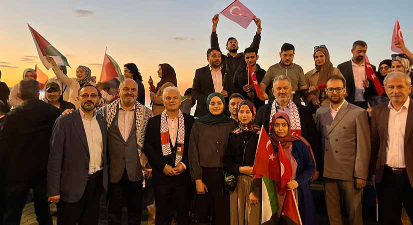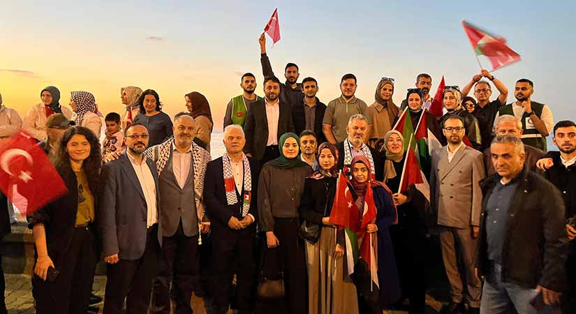 Filistin’e Destek Platformu öncülüğünde gerçekleştirilen program, Kumyalı Balıkçı Barınağı’nda başladı. Tekne ve balıkçı kayıkları Türk ve Filistin bayraklarıyla süslendi. Yüzlerce vatandaşın katıldığı etkinliğe Giresun Valisi Mehmet Fatih Serdengeçti, AK Parti Milletvekilleri Nazım Elmas ve Ali Temür, siyasi parti temsilcileri ile çok sayıda sivil toplum kuruluşu da destek verdi.