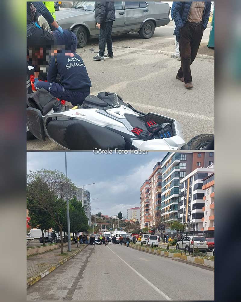 Görele Bozcaali Mahallesi’nde saat 14.20 sıralarında motosiklet ile otomobilin çarpışması sonucu trafik kazası meydana geldi. Çarpışmanın etkisiyle motosiklet sürücüsü yaralanarak yere savruldu.