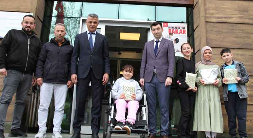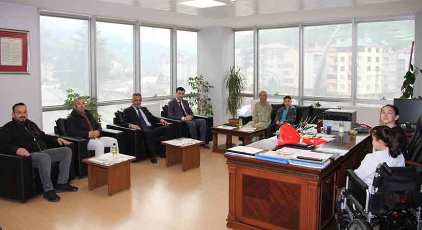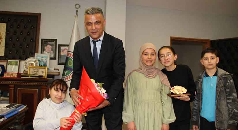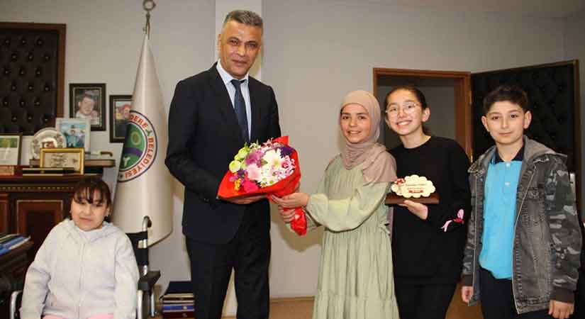 Yağlıdere İmam Hatip Ortaokulu öğrencileri Esmanur Tuzcu, Elif Hilal Türkmen, Yiğit Mert Çayan ve Yüsranur Yardım, belediyeyi ziyaret ederek Başkan İbaş’a çiçek takdim etti.