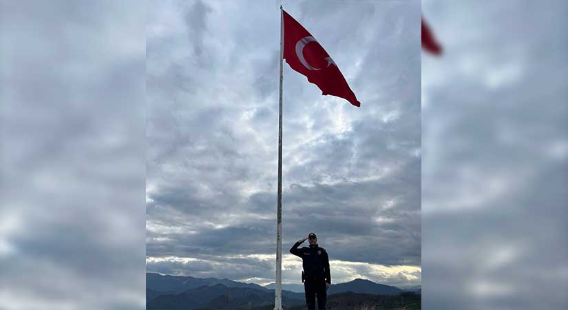 Valiliğin talimatı doğrultusunda Çanakçı Kaymakamlığı tarafından görevlendirilen emniyet güçleri, yeni Türk bayrağını zirveye çıkararak göndere İstiklal Marşı ve saygı duruşu eşliğinde çekti.