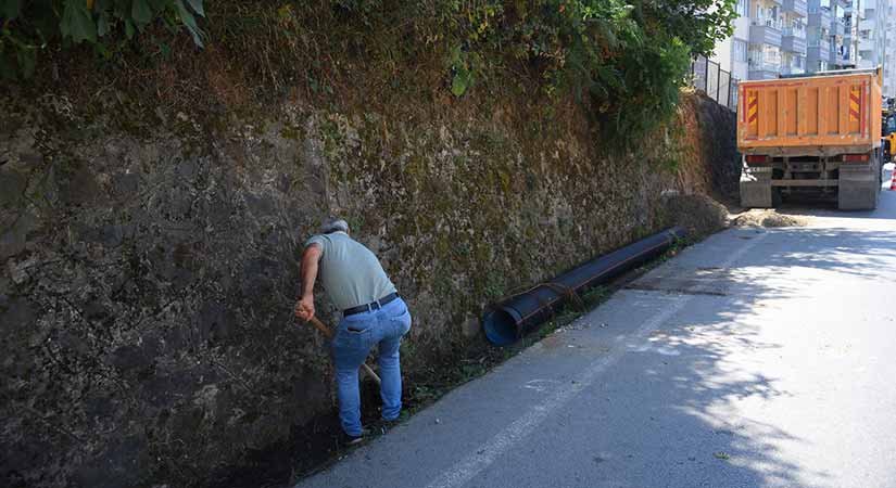 Su ve Kanalizasyon İşleri Müdürlüğü ile Fen İşleri Müdürlüğü ekiplerinin ortak çalışmasıyla, yol kenarından açık şekilde akan yağmur suları altyapıya entegre edildi. 300’lük borularla toplanan sular, hem çevre hem de trafik güvenliği açısından risk oluşturan durumu ortadan kaldırdı.