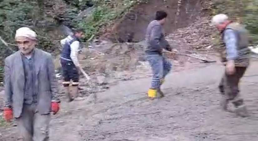 Giresun’un Dereli İlçesi’ne bağlı Meşeliyatak Köyü yol sorunu yıllardır çözüme kavuşmayı beklerken, köy halkı kendi imkânlarıyla harekete geçti.