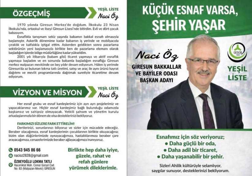 Giresun Bakkallar ve Bayiler Odası Başkan Adayı Naci Öz, oda yönetimindeki eylemsizliğe son vermek iddiasıyla sahaya indi. Zincir mağazalara karşı yerel dirençten esnaf çocuklarına bursa uzanan projeler, kent ticaretinde yeni bir dönemin sinyalini veriyor.