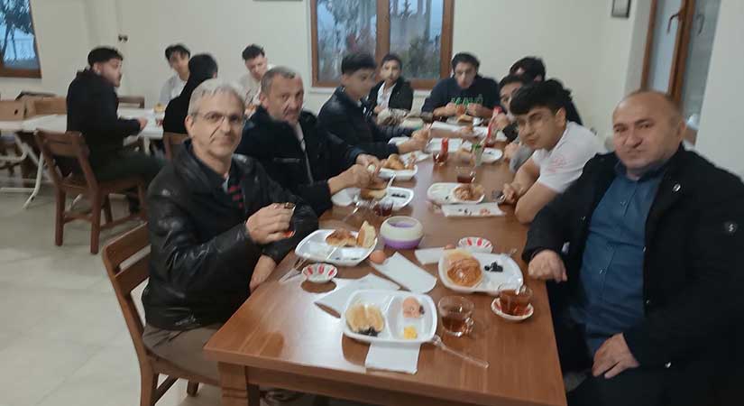 Sabah namazını Gülburnu Kıran Camiinde kılan öğrenciler , ardından muhteşem deniz manzarası eşliğinde kahvaltı yaptılar .
