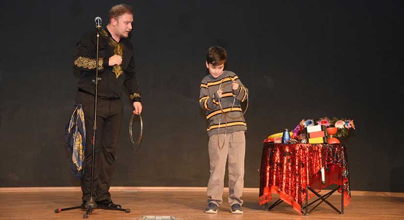 Program akışının son bölümünde sahne alan Hacivat-Karagöz gölge oyunu, çocuklardan büyük alkış aldı. Hacivat ile Karagöz’ün eğlenceli diyalogları salonda kahkahalara neden oldu. Gösterinin ardından sahneye çıkan jonglör, hünerli performansıyla dikkat çekti.