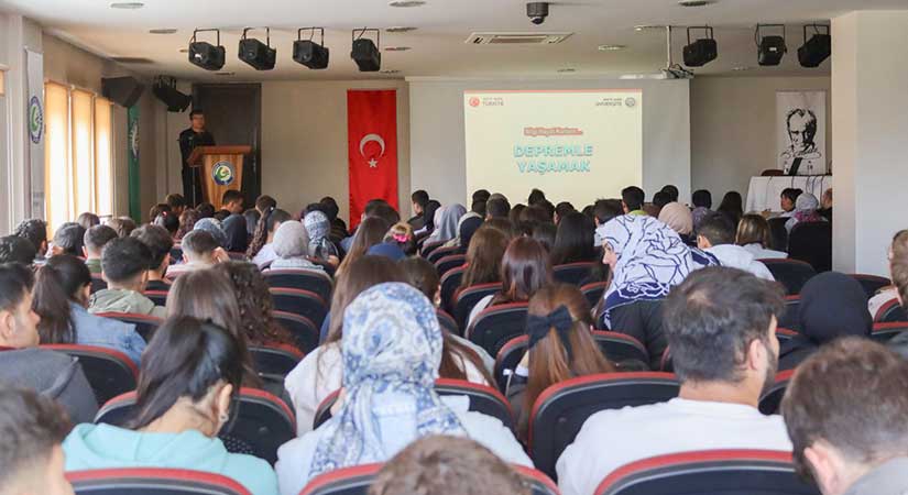 Etkinliğin ikinci bölümünde ise GRÜ İş Sağlığı ve Güvenliği Koordinatörü Öğr. Gör. Zafer Sak, deprem sonrası oluşabilecek ikincil afetlerden olan yangın tehlikesine dikkat çekti. Günlük yaşamda karşılaşılabilecek yangınlara karşı nasıl korunulması gerektiğini örneklerle anlatan Sak, bireysel farkındalık ve hızlı müdahalenin önemine değindi.