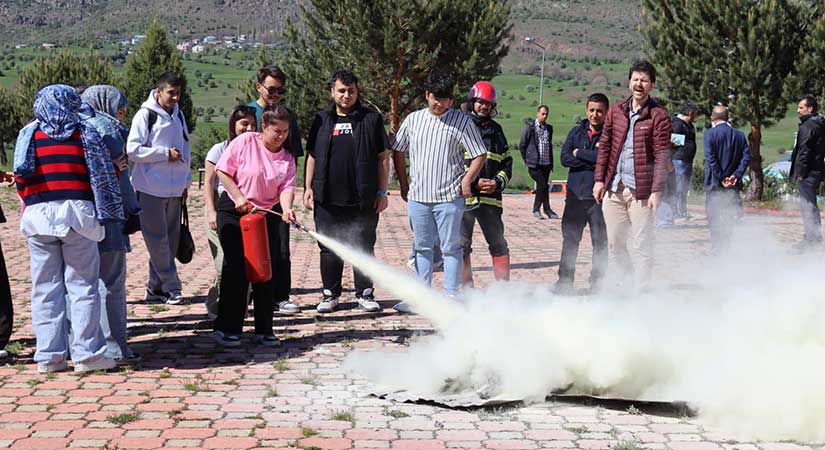 Eğitimin ardından, Şebinkarahisar İtfaiyesi eşliğinde yerleşkede uygulamalı yangın tatbikatı düzenlendi. Öğrenciler ve personel, yangın söndürücülerle nasıl müdahale edilmesi gerektiğini bizzat deneyimledi. Tatbikat, afetlere karşı teorik bilginin pratiğe dönüştürülmesi açısından önemli bir adım oldu.