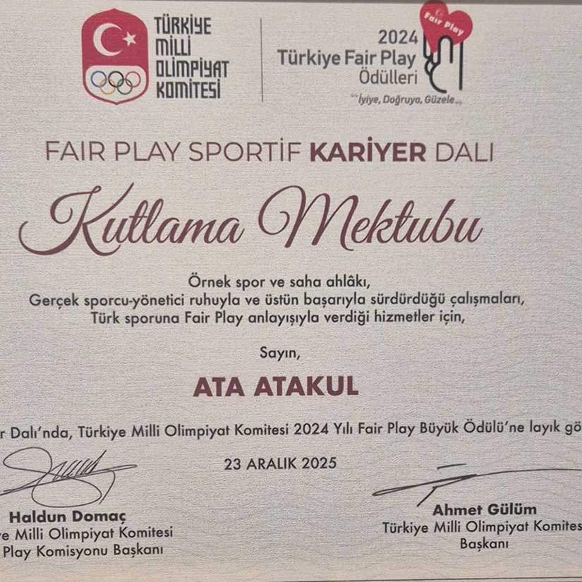 Ödülle ilgili duygularını paylaşan Atakul, “Türkiye Milli Olimpiyat Komitesi tarafından rafting branşında öğrencilerimle yaptığım çalışma ve başarılardan dolayı Fair Play Sportif Kariyer Dalı Kutlama Mektubuyla ödüllendirilmenin mutluluğunu yaşıyorum. Ben ne yaptıysam, ne yapıyorsam öğrencilerim için ve öğrencilerimle birlikte yapıyorum.” ifadelerini kullandı.